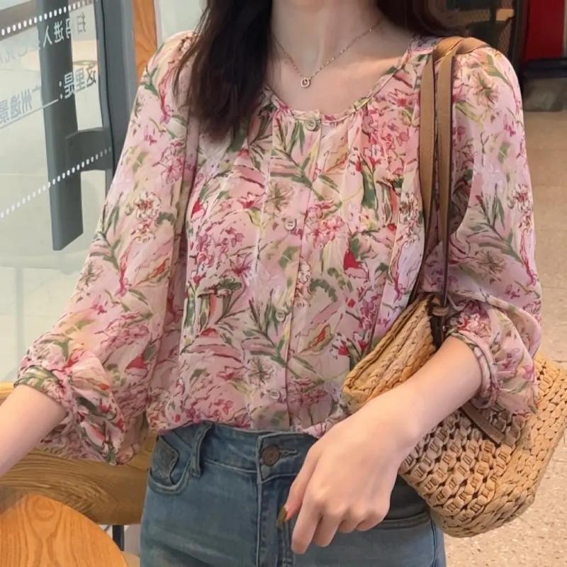 Женская блузка свободного кроя с цветочным принтом, короткий рукав, повседневная летняя пляжная топ