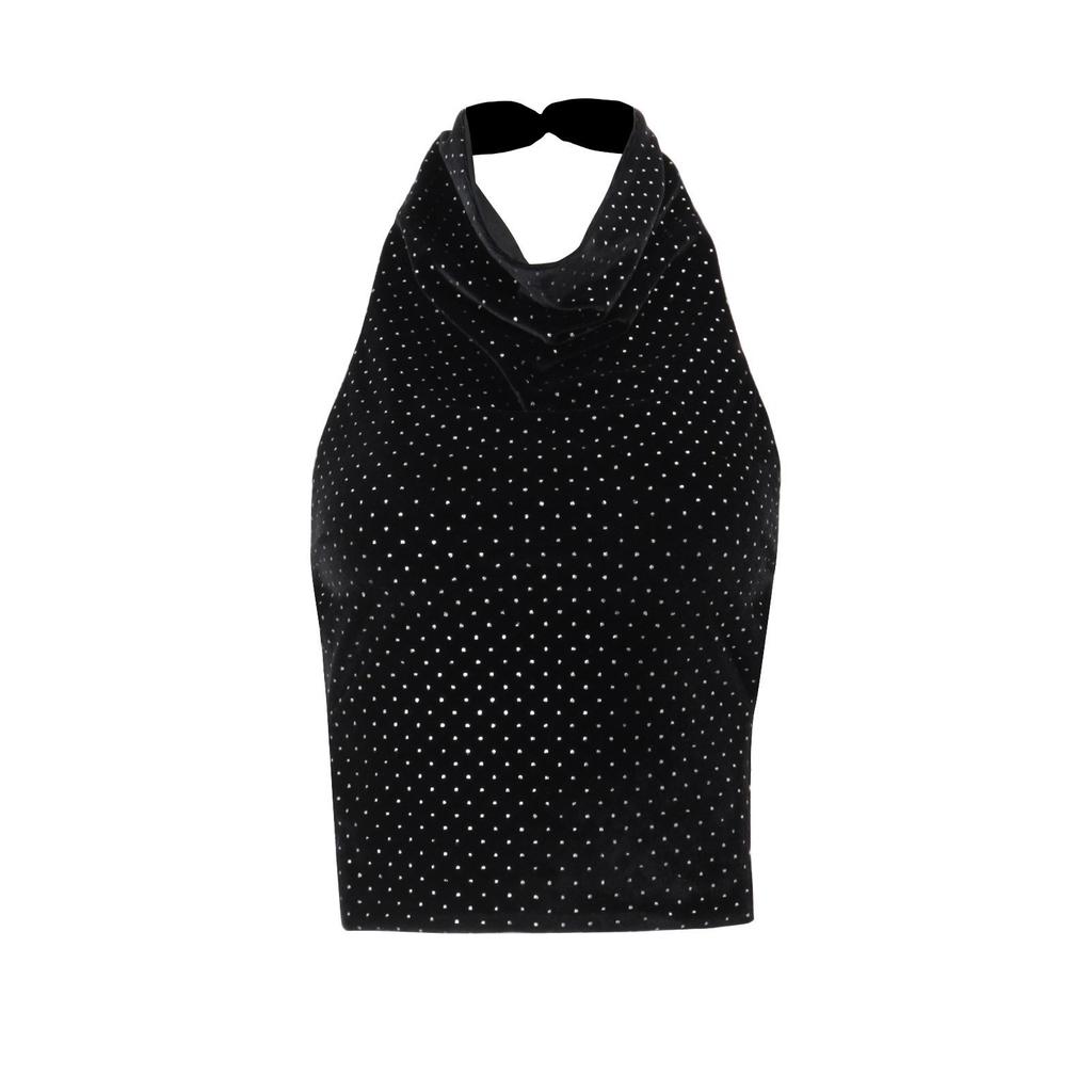 Женский укороченный топ с вырезом-халтер, без рукавов, с открытой спиной, украшенный стразами, блестящий, для вечеринки, клуба
