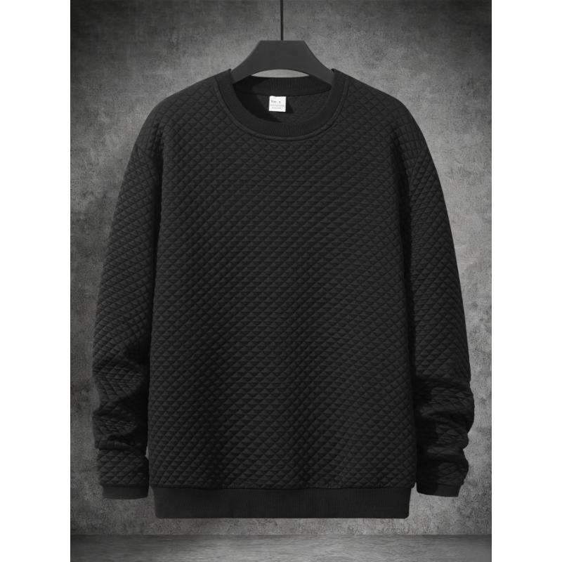 Men's Quilted Crew Neck Sweatshirt Casual Textured Pullover Top for Daily Wear — купить товар онлайн с бесплатной доставкой по всему миру!