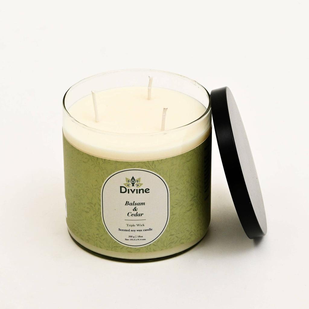 Balsam & Cedar Triple Wick Glass Candle -Warm Woodsy Scented Candle for Cozy & Natural Ambiance