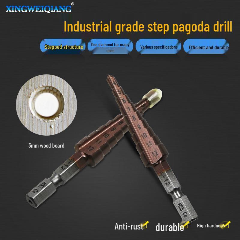 M35 Cobalt Coated Stainless Steel Hex Shank Straight Flute Step Drill Bit, 4-12mm, 9 Steps