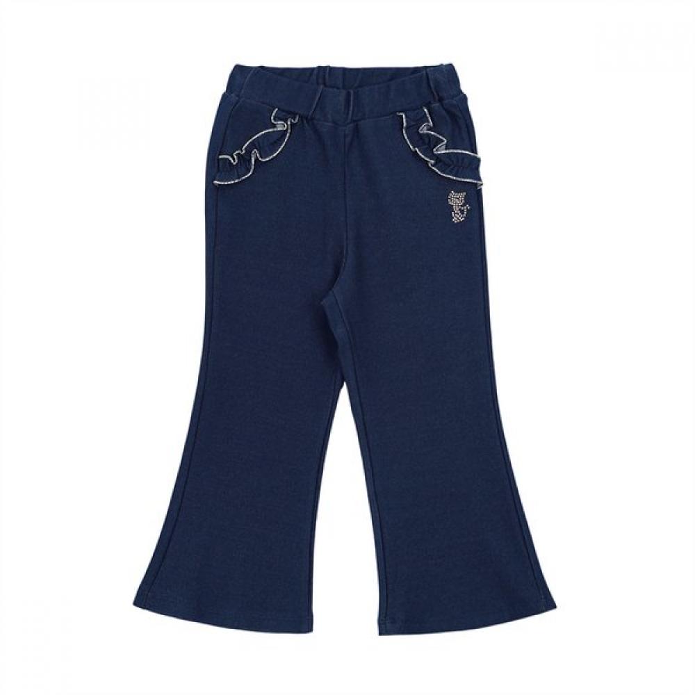 Французские Женские Джинсы Bootcut NV с Воланом (Q51DKP150) это пара брюк полуклеш красивого темно-синего цвета с деталями в виде оборок. Волан, украшенный золотым переплетением в области кармана, привлекает внимание, и он содержит спандекс для удобной посадки и активности.. Его дизайн хорошо сочетается с различными нарядами, что делает его отличным модным аксессуаром для детей.