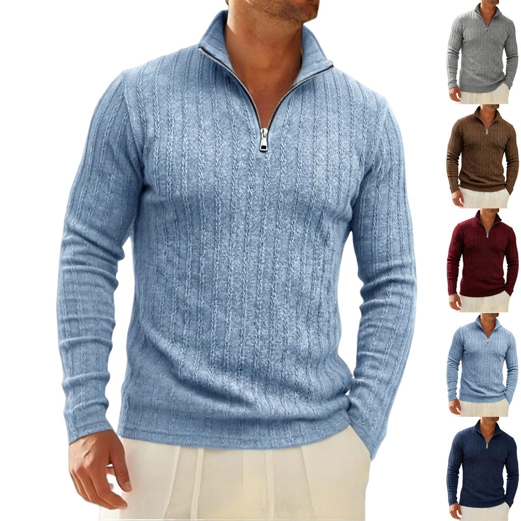 Мужская повседневная рубашка с четвертью молнии, топ с длинным рукавом