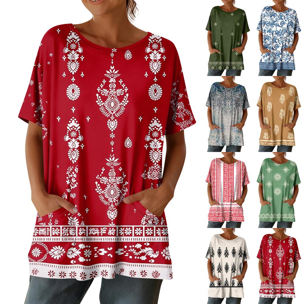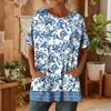 Женская мода повседневный короткий рукав цветочный принт топ