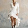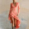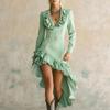 Женская Модная Ретро Западная Пасторальная Платье с Оборками Кружевной Воротник Неровный Подол Платье