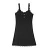 Женская элегантная ночная рубашка в рубчик с кружевной отделкой, без рукавов, V-образный вырез, декоративные пуговицы, платье-комбинация, удобная одежда для сна и отдыха