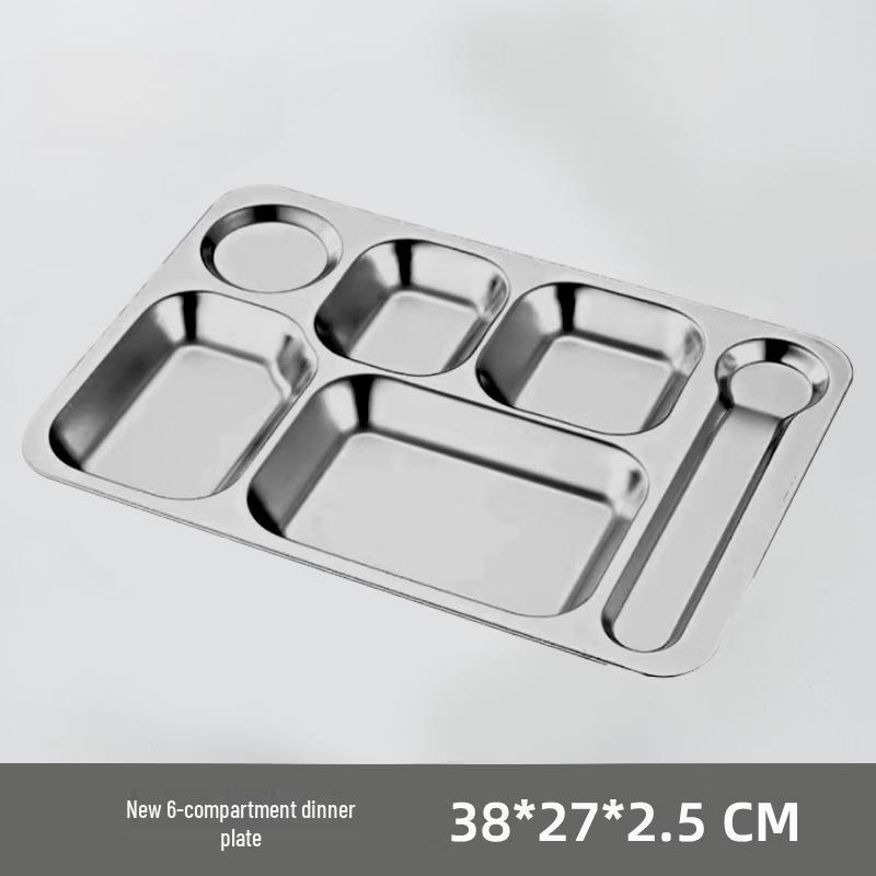WUHE Stainless Steel 6-Compartment Divided Dinner Plate