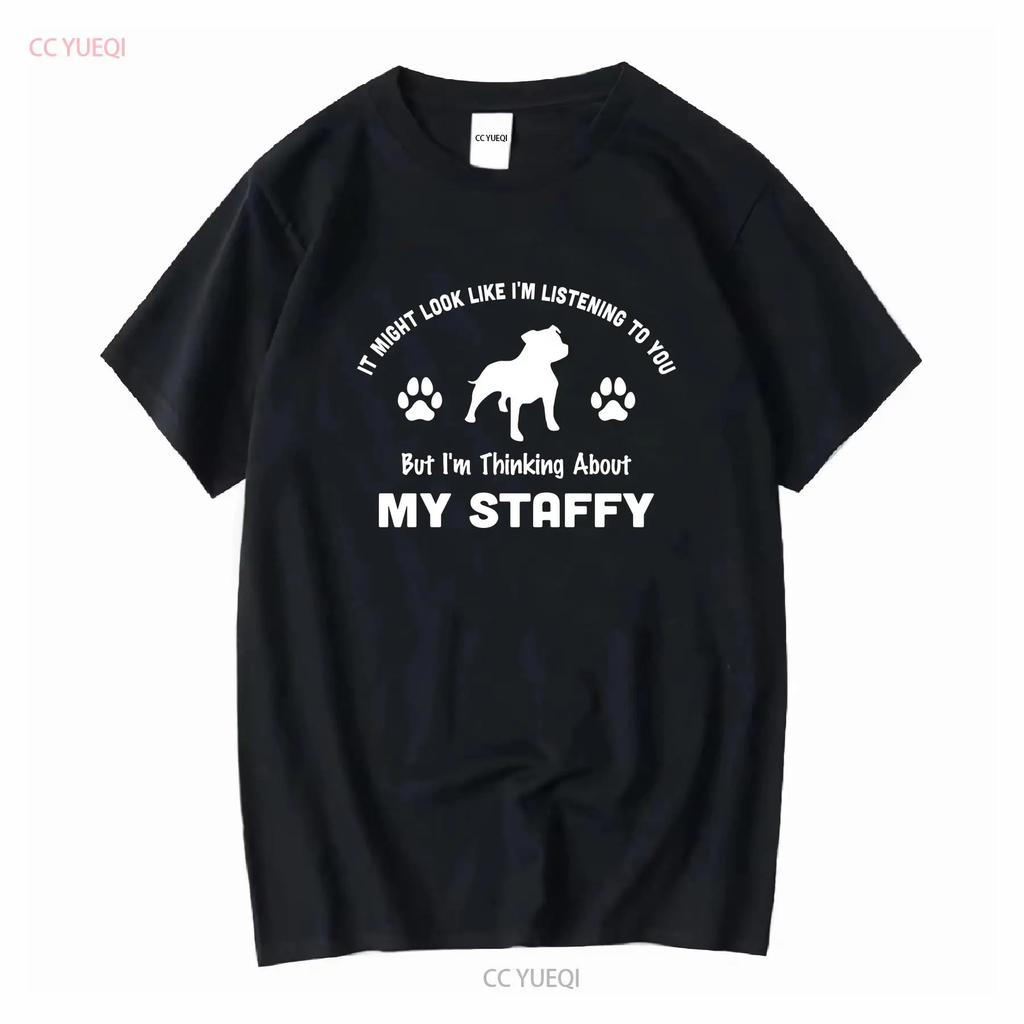 Похоже, я слушаю, думаю о своем стаффи Футболка Папа Собаки Владелец Забавная Стаффордширский Бультерьер винтажная Постиранная