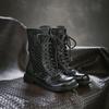 Johnature Retro Genuine Leather Hollow-out Breathable Summer Mid-calf Boots Versatile Fashion Women's Shoes — купить товар онлайн с бесплатной доставкой по всему миру!