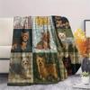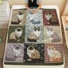 Nine grid dog cat fabric Print Flannel Blanket,High quality Comfortable for All Seasons,Home Decor,Warmth and Comfort,Perfect for Christmas Gifts