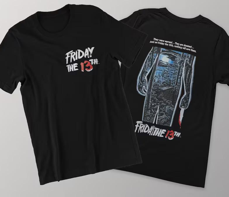 Хоррор Пятница 13-е Печатный Шрифт Спереди и Сзади Унисекс Классическая Футболка Унисекс Футболка