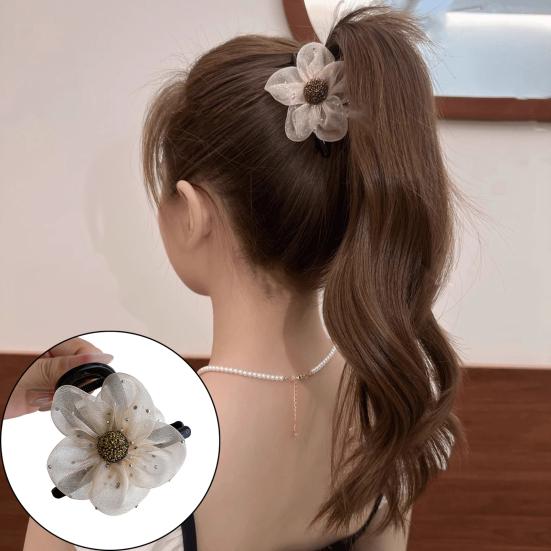 Женская заколка для волос, безопасная для кожи головы, марлевая заколка для волос с цветочным узором, долговечная, полузакрытая, конский хвост, зажим-акула, зажим для женщин, шиньон