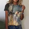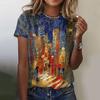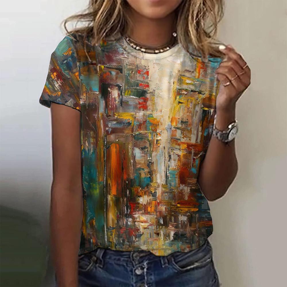 Женские футболки с 3D-печатью, узором в виде масляной живописи, круглым вырезом и коротким рукавом, Y2k, Харадзюку, Топы, Женская одежда