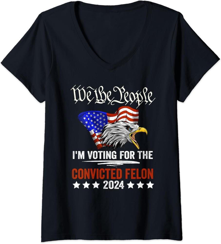 I'm Voting For The Convicted Felon Eagle 2024 Ladies' V-Neck Tshirt Unisex T-Shirt