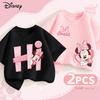 (2 штуки в упаковке) Летняя одежда для девочек Disney из хлопка, детский топ с принтом Минни, короткий рукав