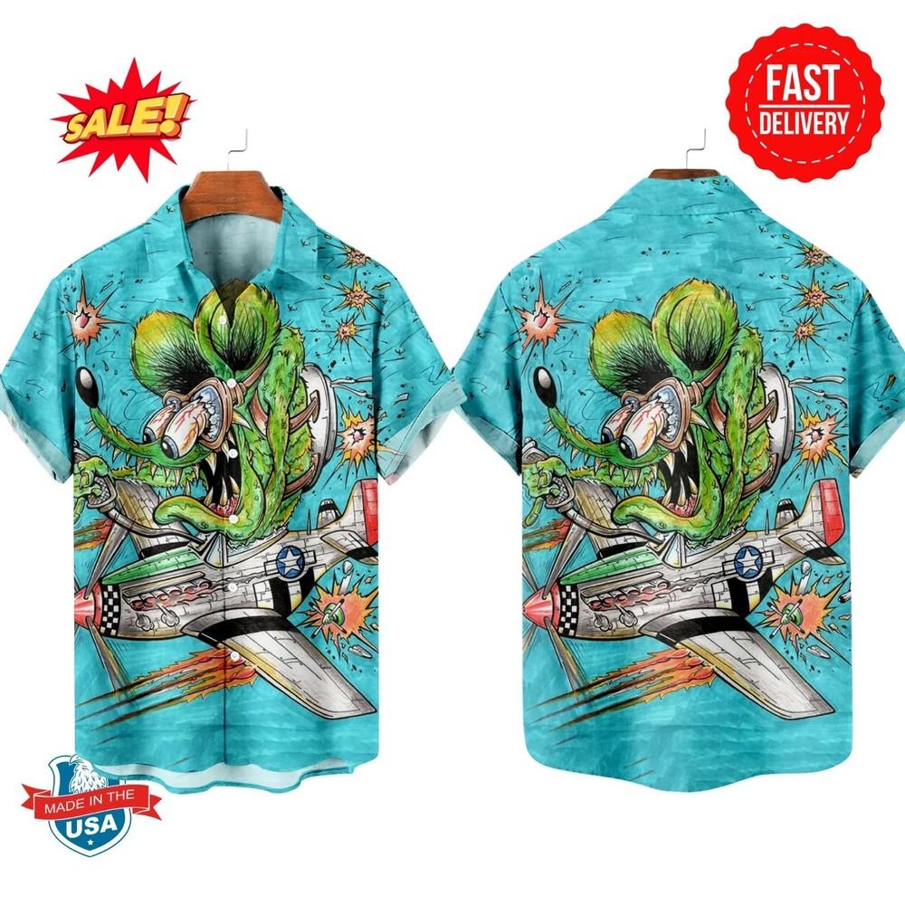 Rat Fink Hawaiian Shirt - Legendary Lowbrow Cartoon Art, High-Speed Racing Unisex T-Shirt — купить товар онлайн с бесплатной доставкой по всему миру!
