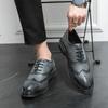 Leather shoes men's new autumn and winter British Brock carved retro business dress gray casual shoes