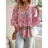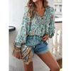 Spring Printed Long Sleeved Shirt Elegant Commuter Women V-neck Top Casual Blouse Vacation Loose Comfortable Street Wear — купить товар онлайн с бесплатной доставкой по всему миру!