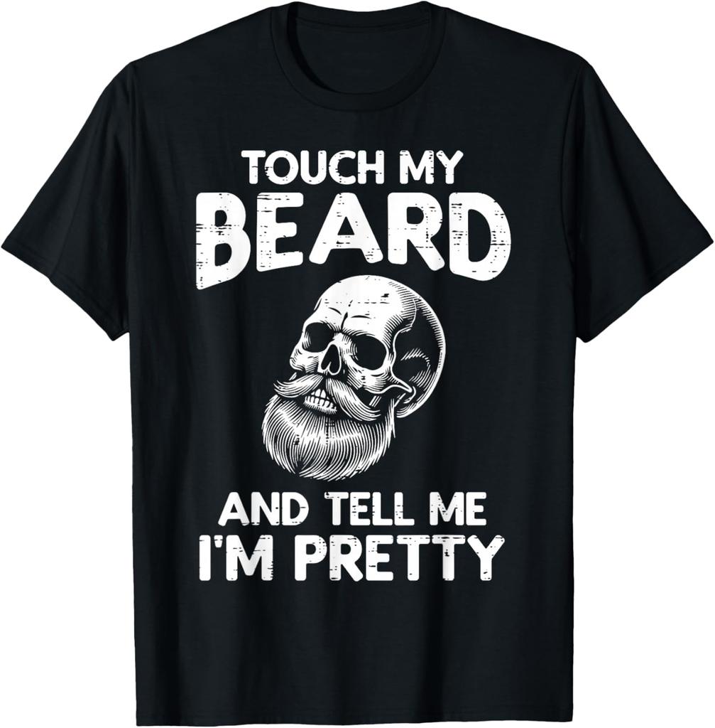 Touch My Beard Tell Me Im Pretty Skull Graphic Men Cotton TShirt Casual Short Sleeve Tee
