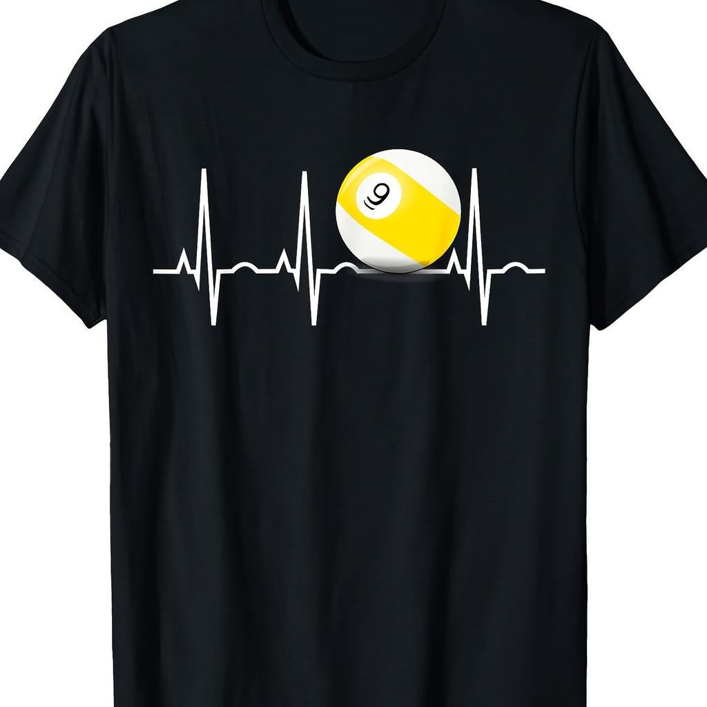 9 Ball Pool Player Heartbeat ECG Graphic Tee Breathable Casual Short Sleeve TShirt