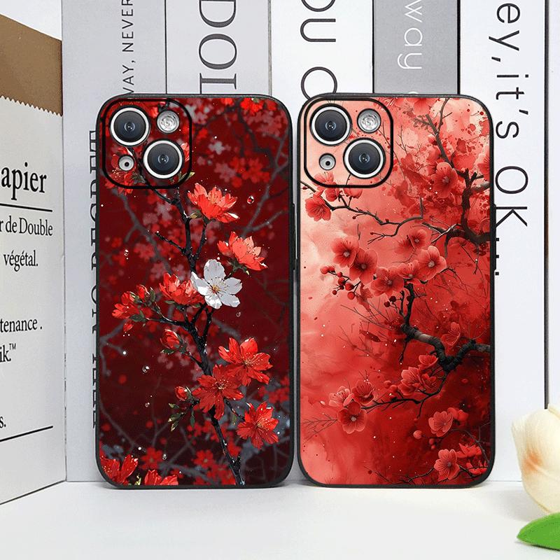 Ретро Художественный Чехол для Телефона с Узором Красных Цветов и Цветов Сливы для iPhone 17 16 12 11 14 Plus 13 15 Pro Max Mini X XS XR Мягкие Чехлы — купить товар онлайн с бесплатной доставкой по всему миру!