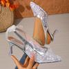 Женские Сандалии Европейское Кружево Сетка Тонкий Каблук Однотонная Обувь Женская с Ремешками-Однослойками Для Покрытия Головы Ажурная Остроносая Женская Обувь