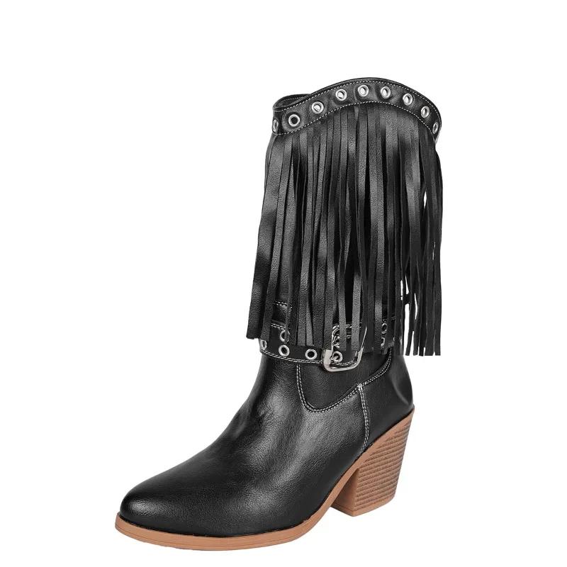 Женская обувь 2026 Новые Модные женские ботинки-слипоны с кисточками Современные женские зимние ботинки с пряжкой Большие размеры Лучший продавец Ботинки до середины голени