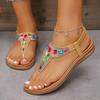 Летние богемные сандалии с бусинами для женщин, без застежек, удобные, с зажимом для пальцев, римские, на плоской подошве, нескользящие, пляжные, женские сандалии Sandalias Mujer