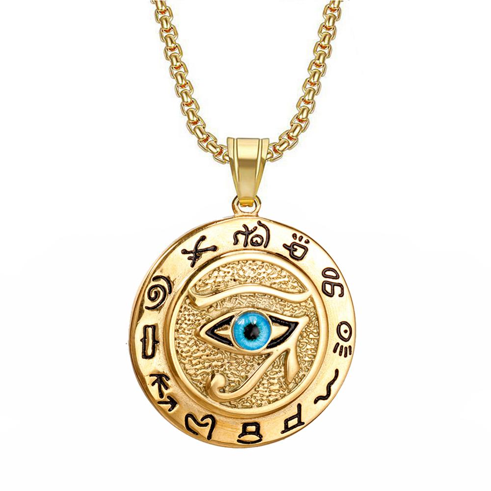 Egyptian Eye of Horus Pendant Gold Silver Color Stainless Steel Round Necklace for Women/Men Ancient Egypt Jewelry Gift