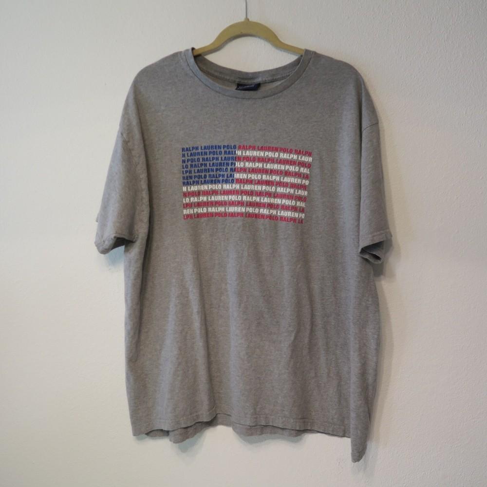 Винтажная серая футболка Ralph Lauren Polo Sport с надписью и логотипом-флагом, круглый вырез, 90-е, размер XL, унисекс — купить товар онлайн с бесплатной доставкой по всему миру!