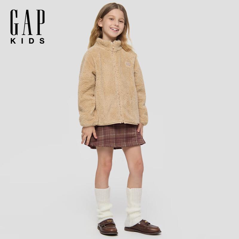 Gap Kids' 2025 Autumn New Style Unisex Plush Fleece Sweatshirt with an embroidered logo and stand-up collar, perfect for spring and autumn. Made from 100% other fabric, offering regular thickness for comfortable wear for both boys and girls.