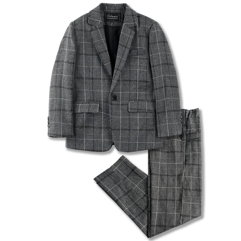 LOLANTA Children's Formal Suit, Boys' Formal Check Pattern 2-Piece Set, Gray, Size 150, for Entrance Ceremonies, Graduations, Recitals, Weddings, and