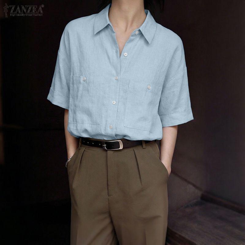 ZANZEA Женская повседневная летняя блузка с отложным воротником и коротким рукавом — купить товар онлайн с бесплатной доставкой по всему миру!