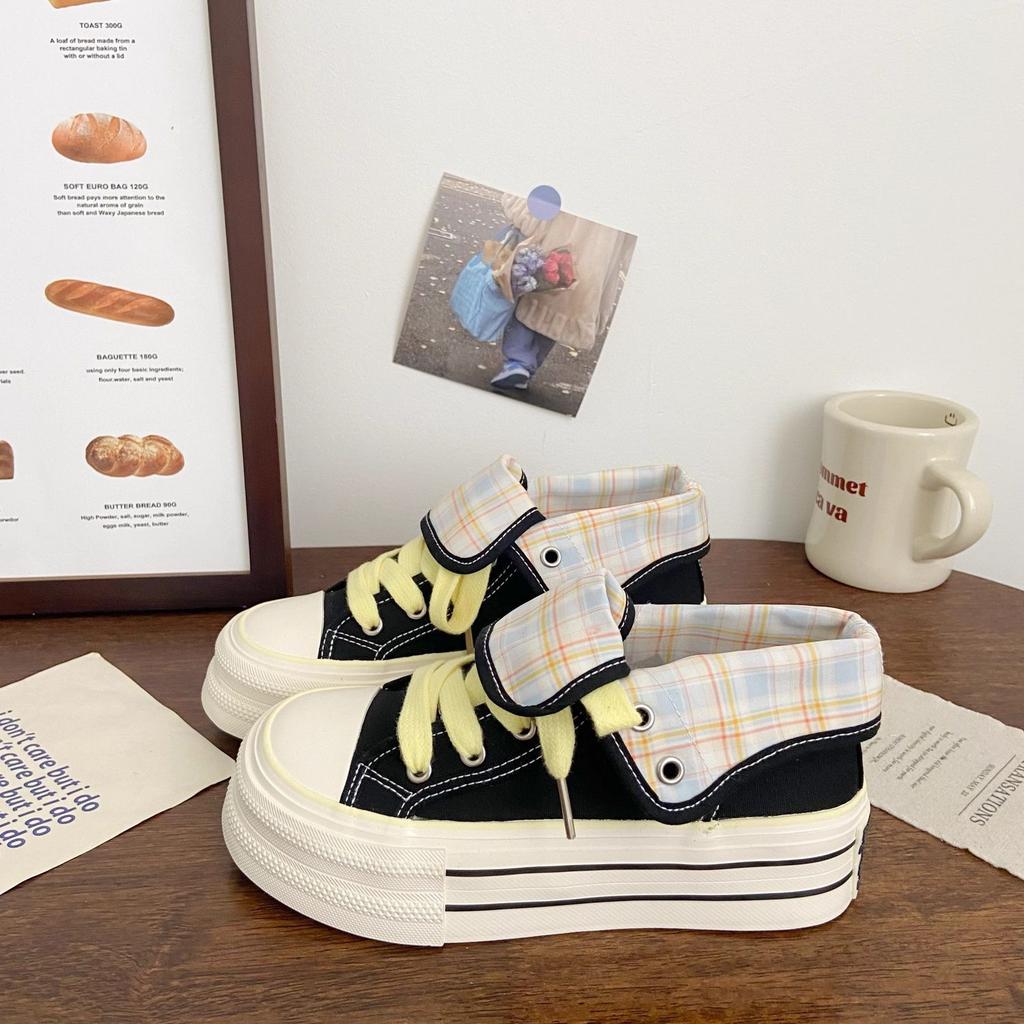 Plaid canvas shoes two wear 22 new autumn shoes niche board shoes sports — купить товар онлайн с бесплатной доставкой по всему миру!