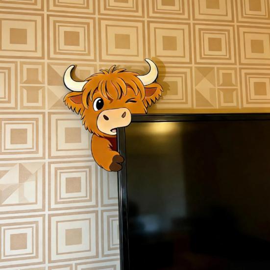 Cute Highland Cow Door Topper Small Wooden Door Frame Corner Sign Cartoon Cattle Computer Monitor Decor for Living Room Bedroom Office — купить товар онлайн с бесплатной доставкой по всему миру!