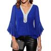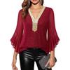 Женские топы с оборками и рукавами 3/4, блестящие, с пайетками, с V-образным вырезом, повседневные блузки, нарядные платья для осени и лета, с блестками, для свадьбы, для бизнеса, рабочие рубашки