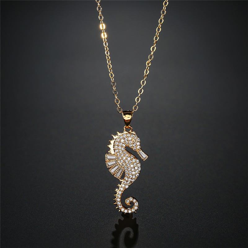 NEWBUY High Quality Copper Seahorse Pendant Necklace For Elegant Women Clear Cubic Zirconia Inlay Female Party Jewelry 4 Colors