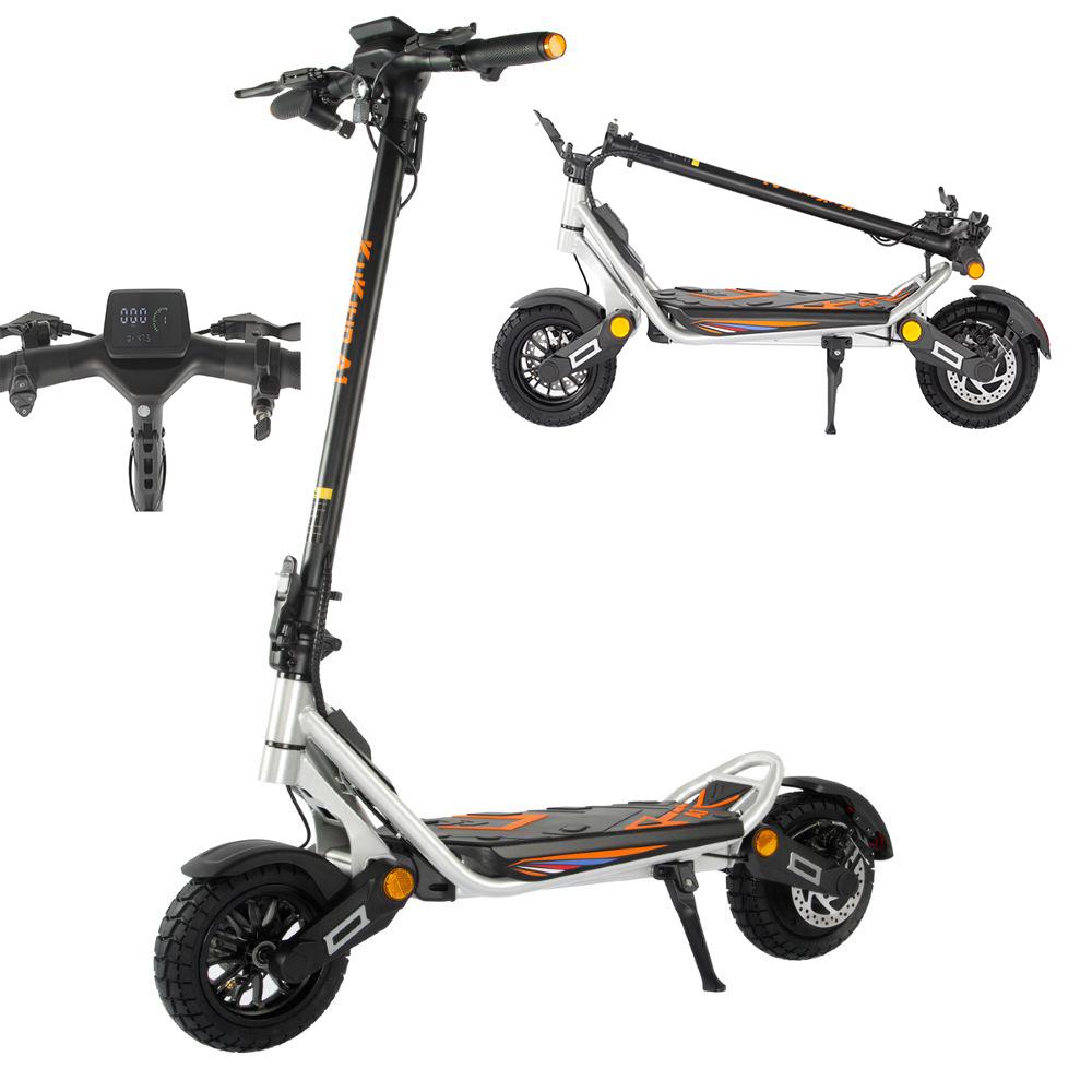 The KuKirin A1 electric scooter comes with 10x3-inch hybrid tubeless tires and front/rear GEL suspension, ensuring stability even on rough terrain.