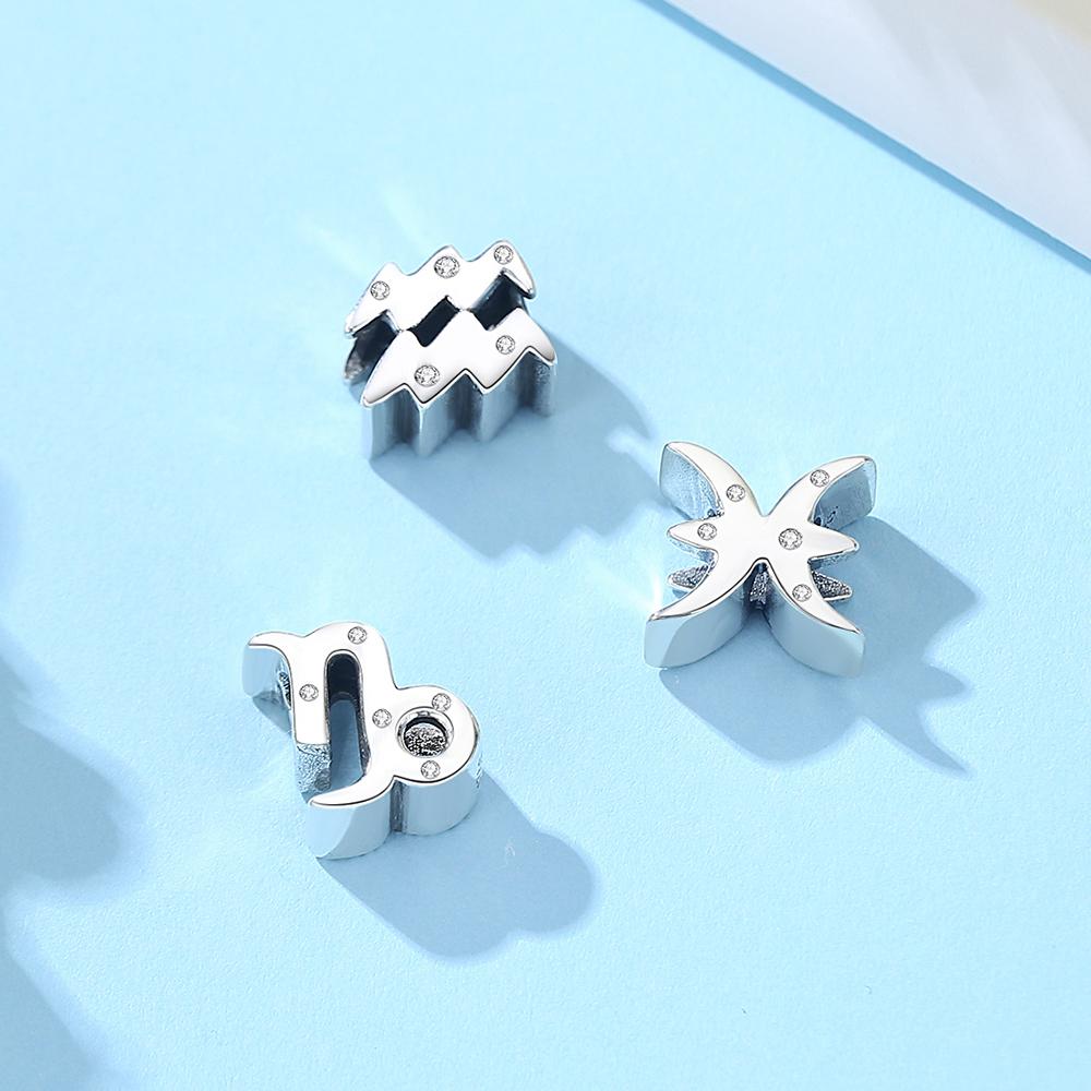 Original 925 Silver Charms Beads 12 Zodiac A-Z Letters Virgo Aries Fit Pan Bracelets Necklaces Jewelry For Women
