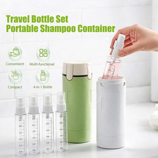 Универсальный многоразовый набор 4-в-1: Этот набор включает четыре флакона по 30 мл, предназначенных для различных туалетных принадлежностей, таких как шампунь, лосьон, крем для волос и другие жидкости.. Каждая бутылочка герметична и портативна, что делает ее идеальной для организации ваших самых необходимых вещей в одном компактном наборе, который адаптируется к различным потребностям в путешествии.