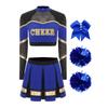Women Cheerleading Performance Dance Outfit Long Sleeve Mock Neck Rhinestones Crop Top Pleated Skirt Hair Tie Set
