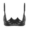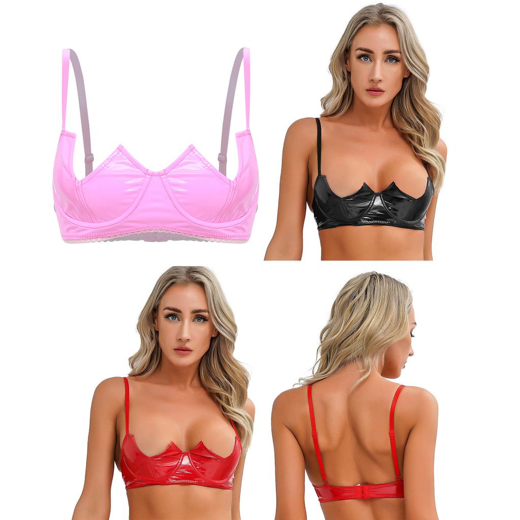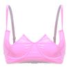 Womens V Notch Underwired Bra Wet Look Patent Leather Adjustable Spaghetti Strap Brassiere Top