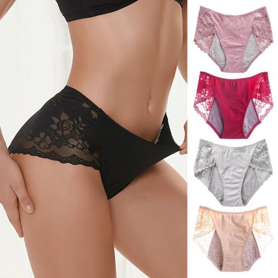 Женские менструальные трусики, кружевные однотонные трусы больших размеров с подтяжкой средней талии, бесшовные эластичные герметичные трусы, женское нижнее белье
