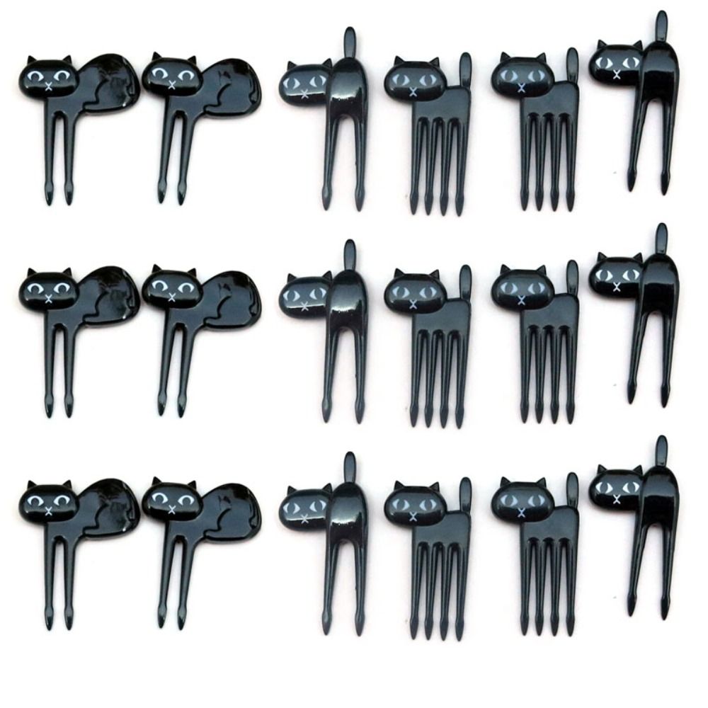 18PCS Mini Black Cat Fruit Fork Creative Dessert Fork Cartoon Fruit Toothpick Kids