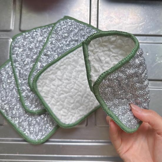 1/2/5/10 шт. Салфетка для мытья посуды из древесного волокна, Двусторонняя чистящая салфетка с тканью из серебряной нити, Многоразовое кухонное полотенце