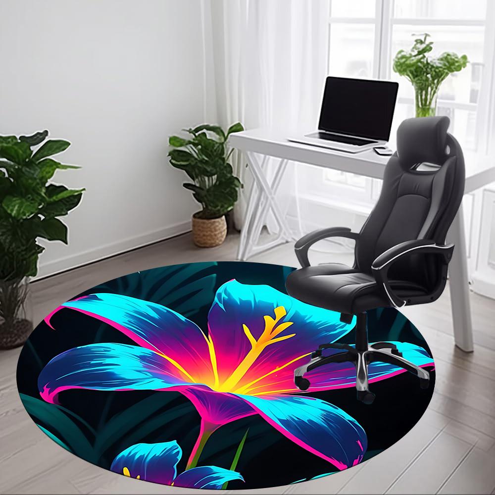 1pc Floral Bloom Office Round Area Rug, Mat Suitable For Office, Under Office Chairs Bedroom Living Room Home Decor, Room Deco