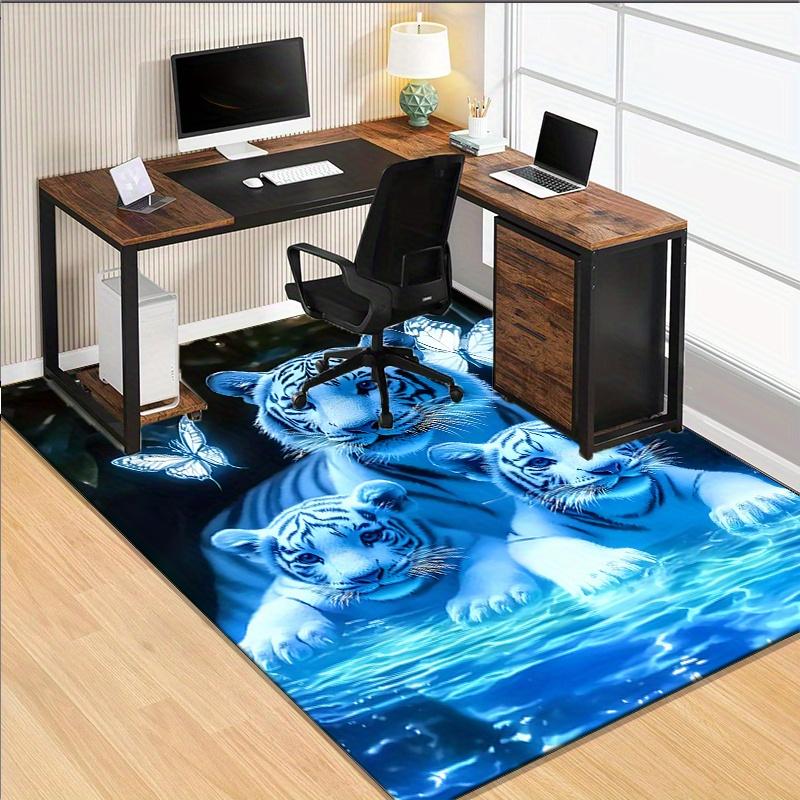 Blue Tiger Water Rug for Bold Interior Design Wild Animal Prints, Eye-Catching Floor Mats for Living AreasSkid resistant carpet