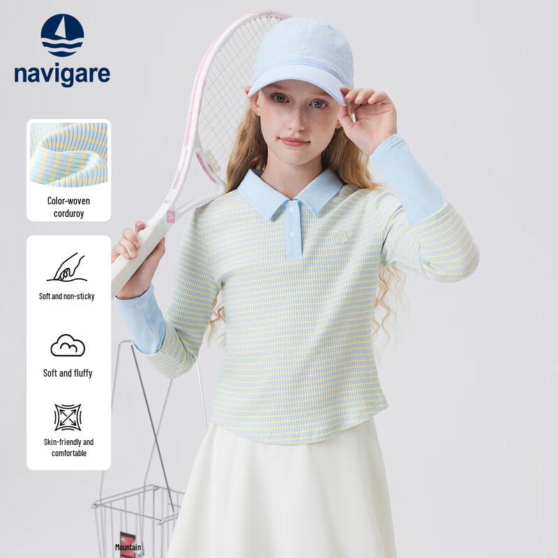 Navigare Девочкин поло-рубашка с длинным рукавом, многослойный образ