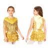 Complete 70s Disco Costume Set for Kids Girls: Shiny Metallic Top with Chest Tassels & Tiered Ruffle Shorts, 2-Piece Outfit