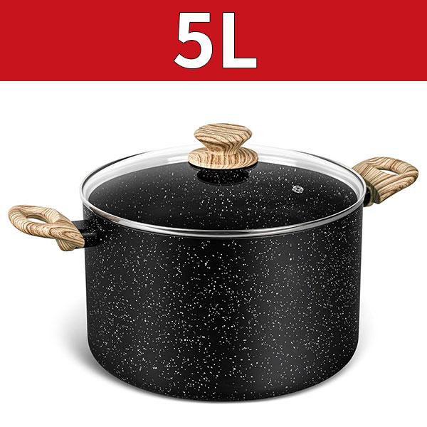 Антипригарная кастрюля 5 кварт Гранитная большая суповая кастрюля Кастрюля для варки пасты со стеклянной крышкой Индукционная посуда Кухонная посуда Черная